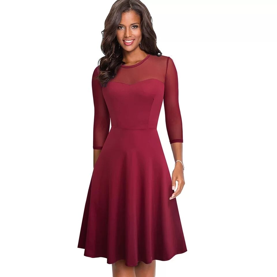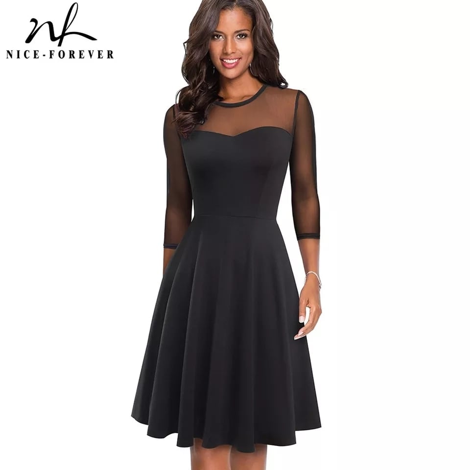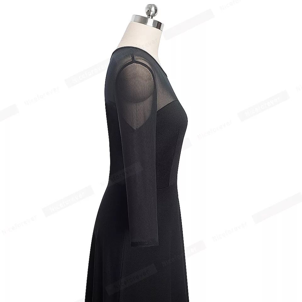 素敵な永遠のエレガントなセクシーなメッシュのレースのパッチワーク vestidos ビジネスパーティースイングフレア女性秋ドレス A170