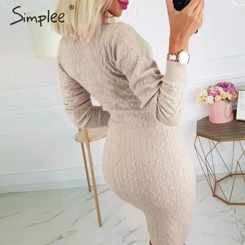 Simplee ストリート o ネックニットドレスカジュアルポケット長袖セータードレスの女性秋シースボディコンショーパーティードレス